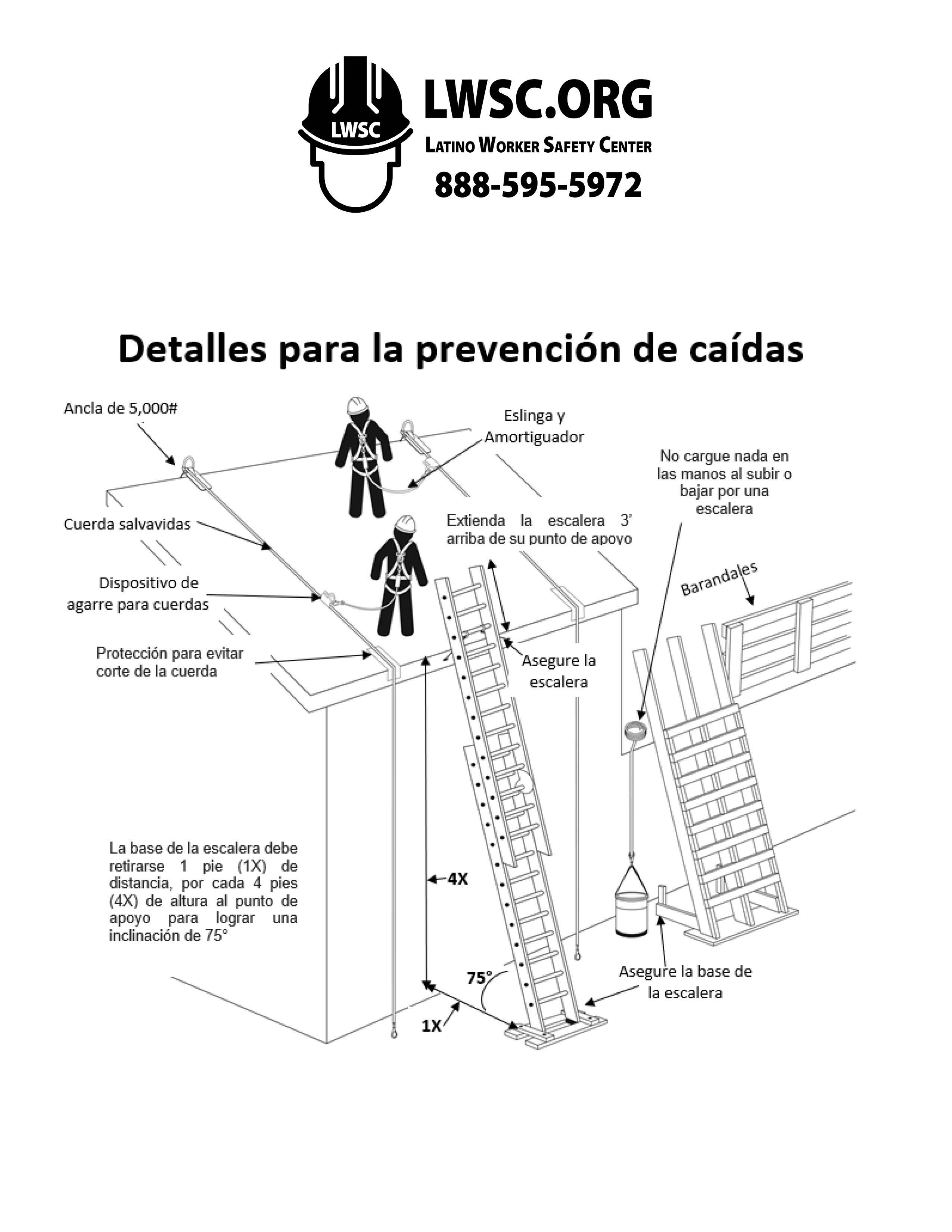• Fall Safety Factsheet – graphic factsheet from the Latino Worker Safety Center about how to prevent falls. Español
