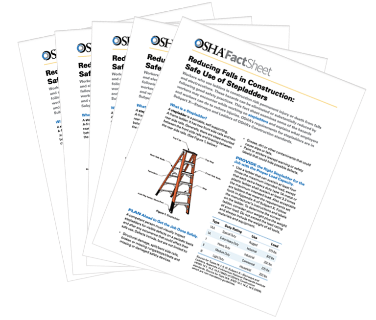 • OSHA Ladder Booklet: Falling Off Ladders Can Kill, Use them Safely – English & Español